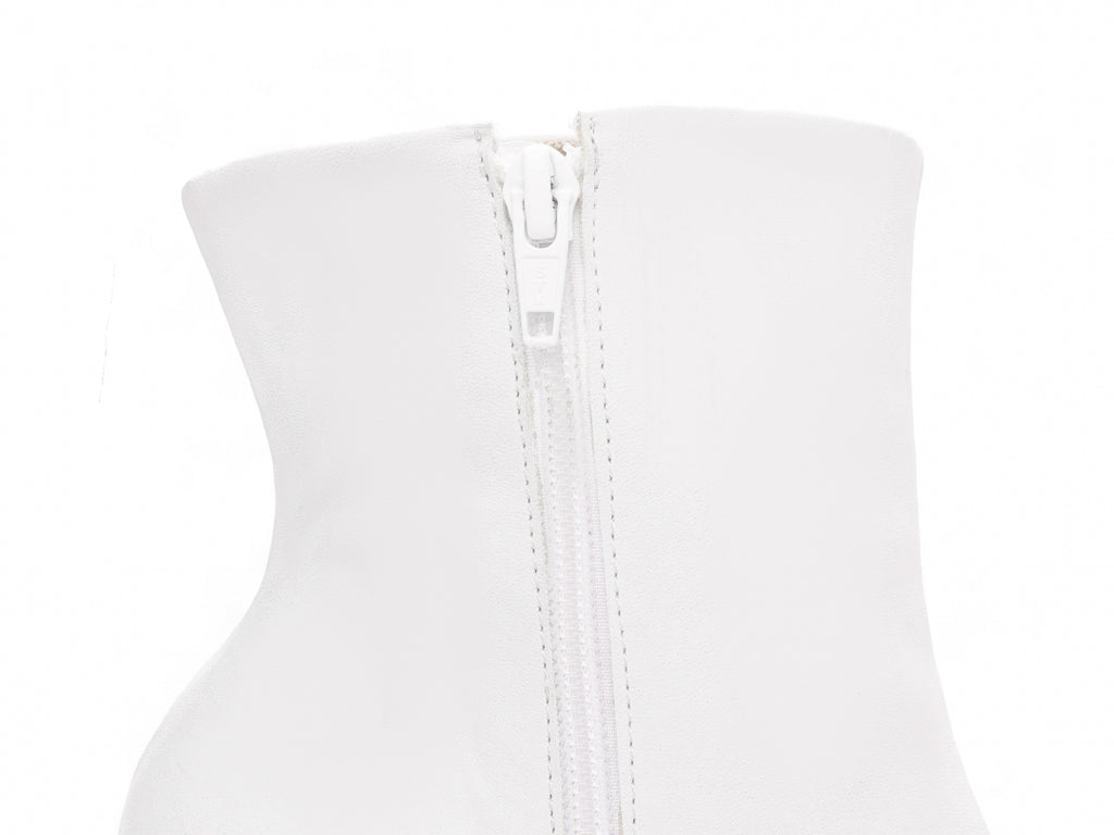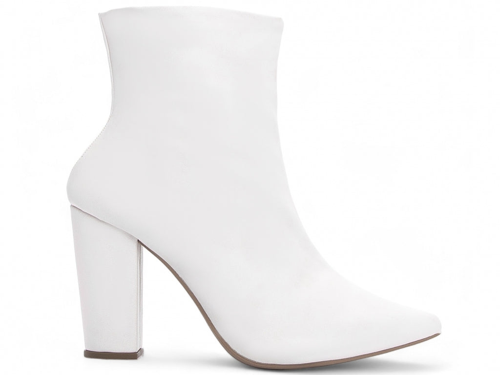 Salto Imponente: Com 9 cm de altura e encapado em Napa Branco, o salto oferece elegância e estabilidade, perfeito para quem deseja se destacar com confiança.