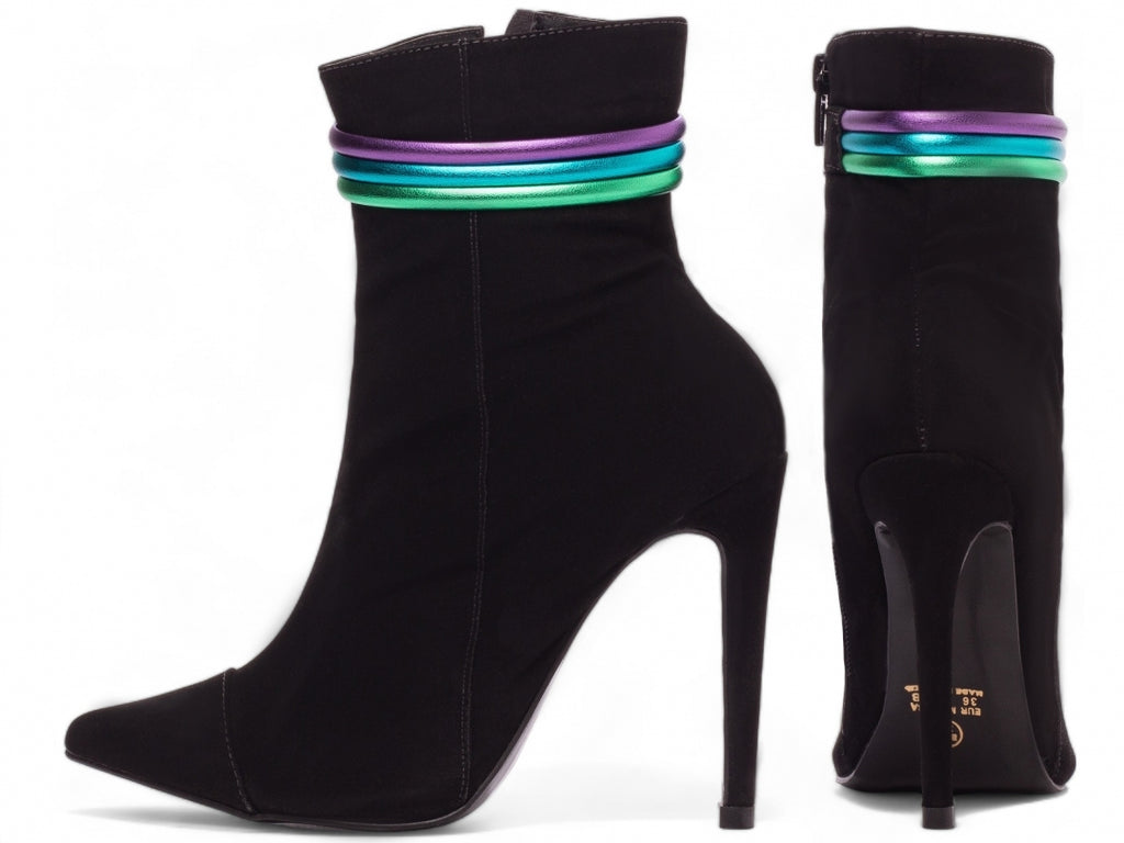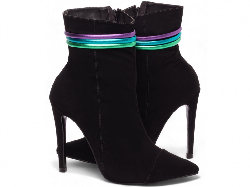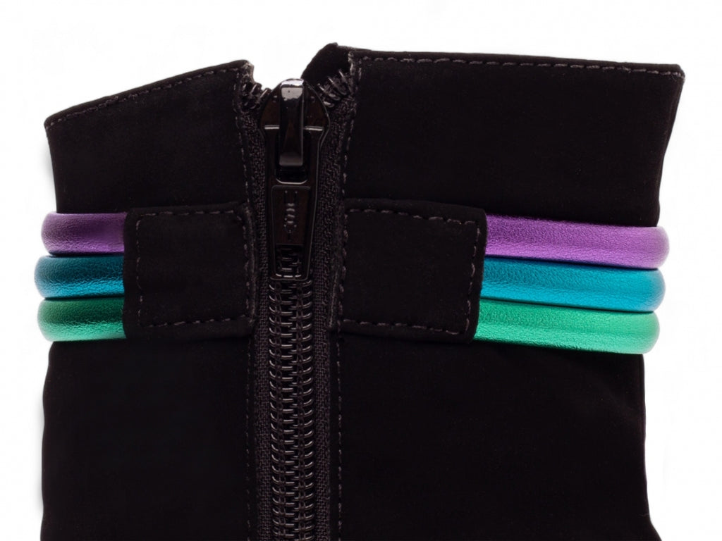 Chegou a hora de arrasar com a nossa, a vibe perfeita pra quem quer estilo, atitude e conforto no mesmo pacote! Com um visual descolado, essa bota mistura o clássico nobuck preto com detalhes que gritam personalidade, como o zíper preto na lateral interna e tiras coloridas que dão aquele toque de ousadia. O salto de 12 cm, todo revestido em nobuck, te coloca no centro das atenções, enquanto a palmilha de EVA de 8 mm e o forro cacharrel espumado garantem que você curta o rolê sem cansar os pés. Leve, estilosa e pronta pra qualquer ocasião, essa bota é o match ideal pra quem vive no próprio ritmo. Cola nessa e faz o seu look bombar!