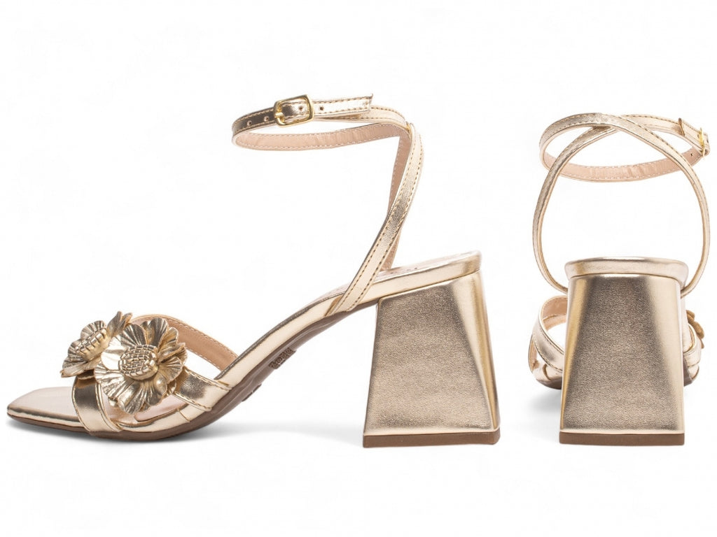 Deslumbrante e versátil, esta sandália de salto grosso combina elegância com um toque romântico, perfeita para ocasiões especiais ou para destacar seu estilo no dia a dia. Com detalhes florais e acabamento reluzente, é a escolha ideal para quem busca sofisticação e conforto em cada passo.