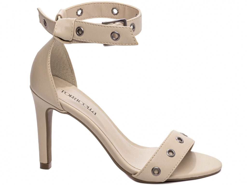 Salto: 9,5 cm de altura, revestido em Napa Bege, oferecendo uma silhueta elegante.