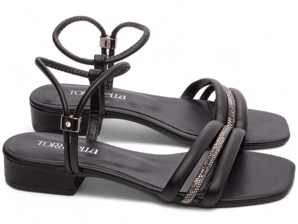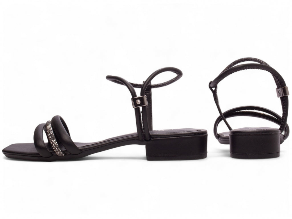 Deslumbre com esta sandália de salto baixo que combina sofisticação e praticidade, ideal para ocasiões especiais ou para um toque de charme no dia a dia. Com detalhes em strass e design delicado, é a escolha perfeita para quem busca estilo e conforto em cada passo.