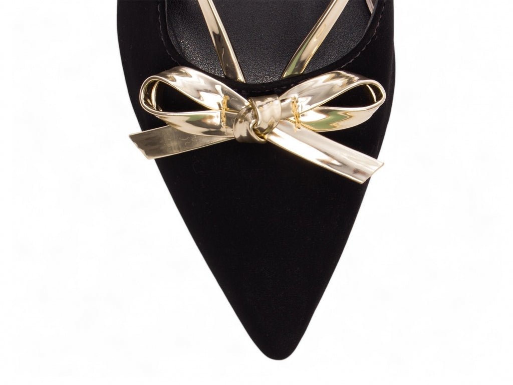 Deslumbre em cada passo com este scarpin que une a suavidade do napa rosê ao brilho delicado do metalizado specchio rosê. Perfeito para ocasiões que pedem elegância com um toque romântico, o laço sofisticado e o salto fino de 9 cm criam uma silhueta refinada, enquanto a palmilha acolchoada garante conforto duradouro. Ideal para a mulher que deseja destacar sua feminilidade com charme e confiança.