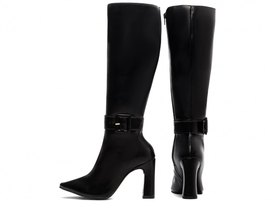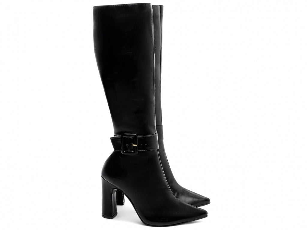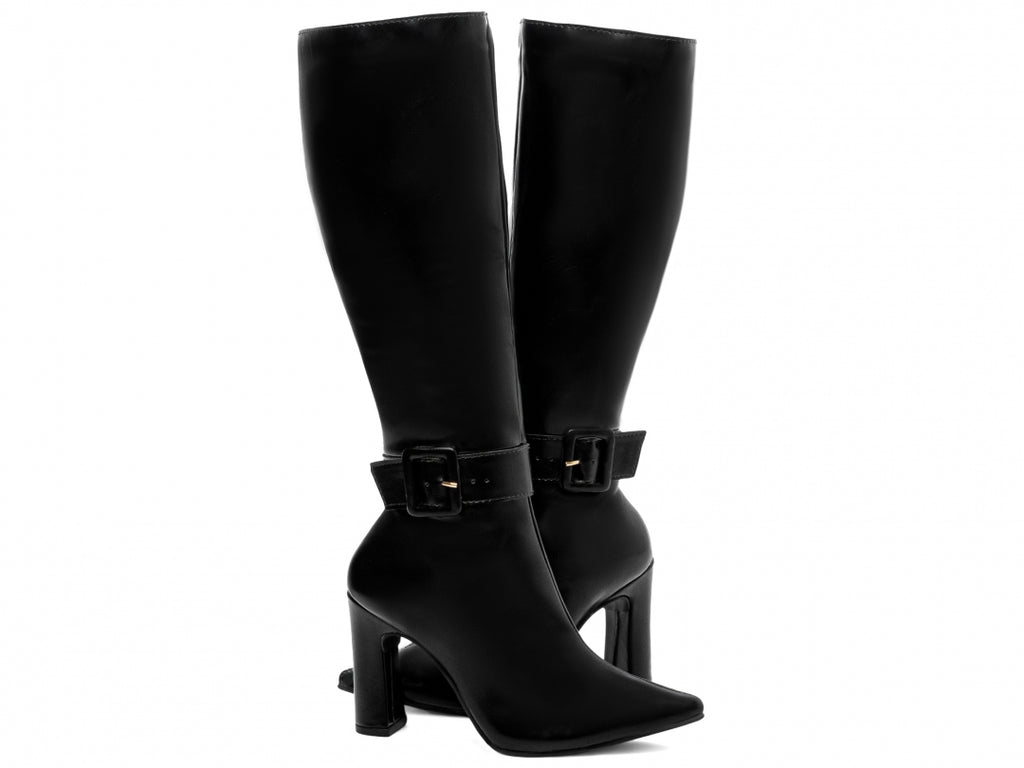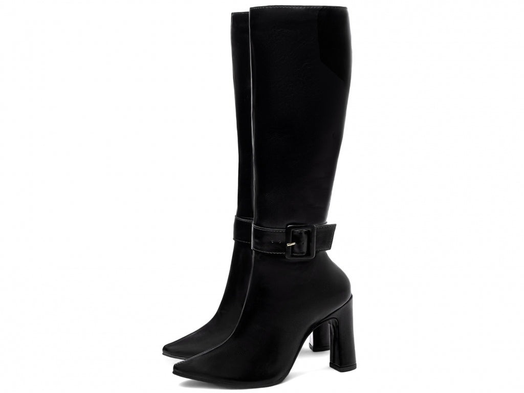 Bota Cano Alto Preta Torrícella - Detalhe com Fivela em Baixo - Bico Fino